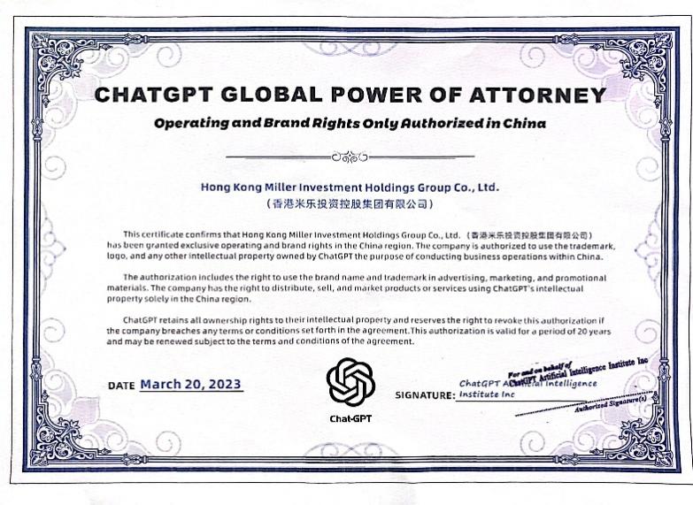 美國OpenAI公司授權書