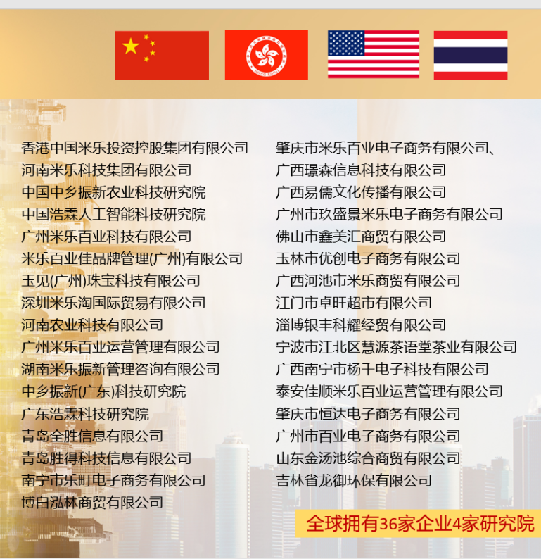 米樂集團秉承“振興農業未來,產業互聯百業”的企業使命,堅持“共創、共贏、共生、共享”的經營理念,以實體產業為中心,鏈接百業為紐帶,持續創新農業發展模式,引領產業互聯未來前沿。公司持續輸出農業經營新形式和小區商圈發展新模式,堅決貫徹“一區一店助一村”戰略,拓展米樂物業、米樂農業、米樂百業和鄉村振興核心業務,充分發揮米樂集團互聯優勢,建立百業產業互聯生態。