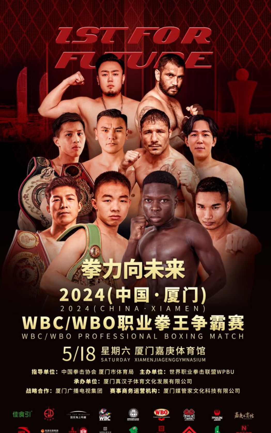 2024(中國·廈門)WBC/WBO職業拳王爭霸賽將於2024年5月18日19:00在廈門市嘉庚體育館重磅來襲!全球頂尖的拳擊選手將在拳台上激情對抗。