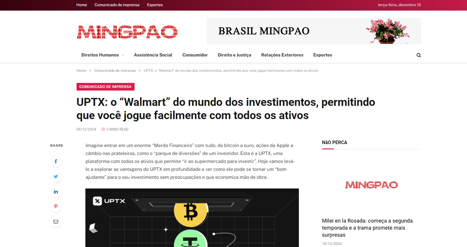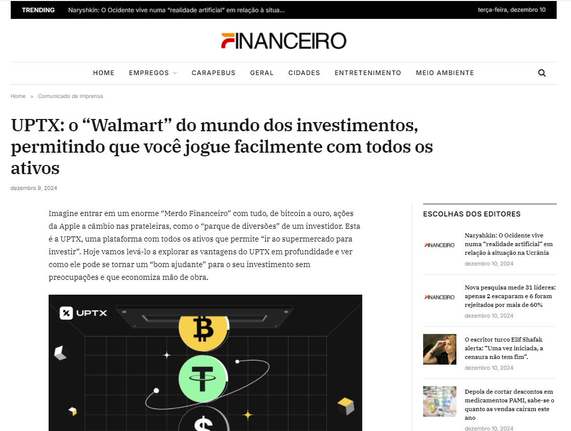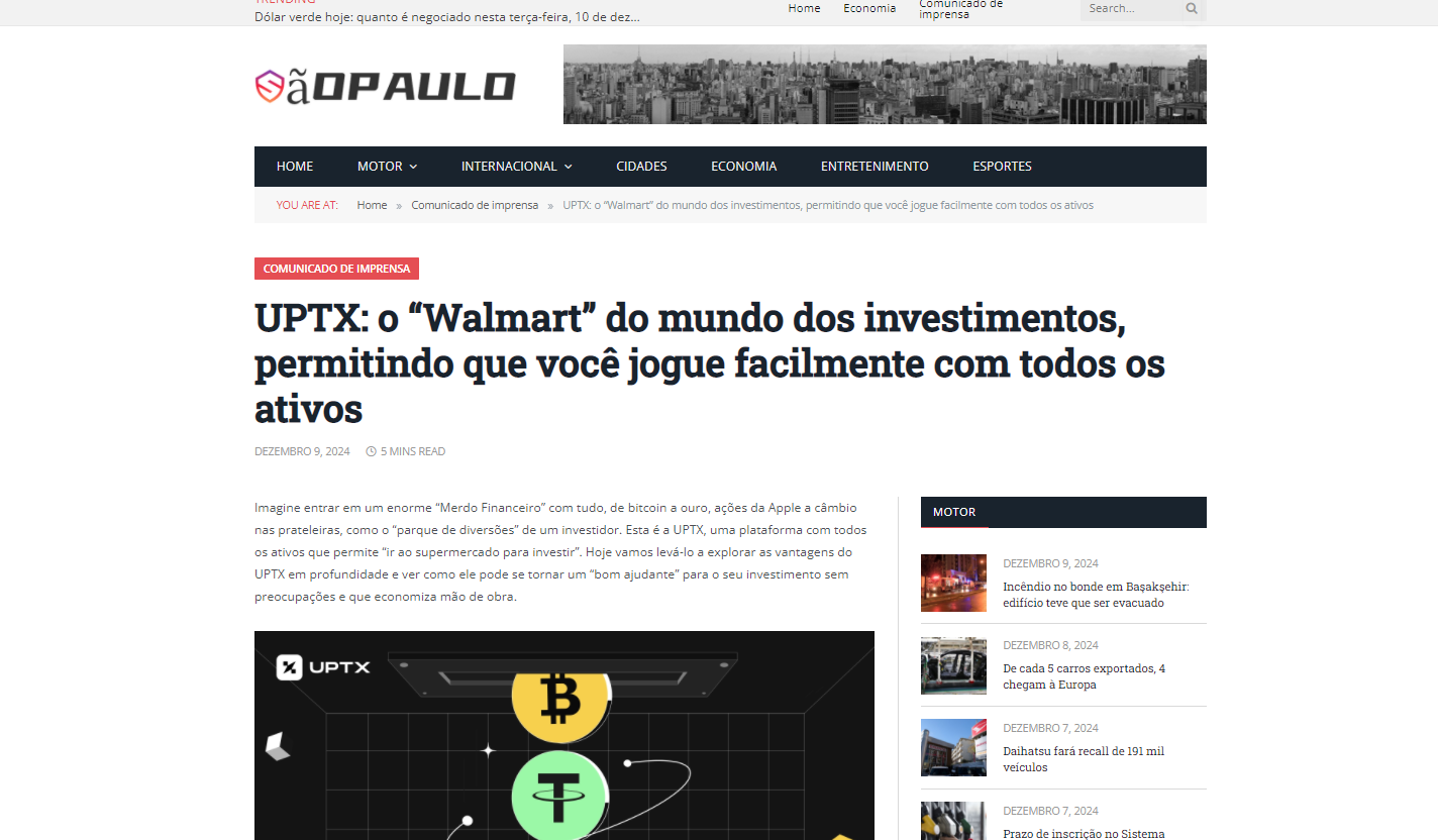 近日,巴西金融郵報,巴西明報,聖保羅內參等數家巴西权威媒体紛紛力薦UPTX交易所,成為巴西加密市場上的熱門話題。不少巴西投資者和媒體都對這家交易所給出了極高的評價。那麼,UPTX交易所究竟為什麼會在巴西這麼受歡迎呢?無論是在交易品種的豐富性、平台的穩定性,還是對於全球化服務的專注,UPTX似乎都展現出了強大的競爭力,深受市場青睞。