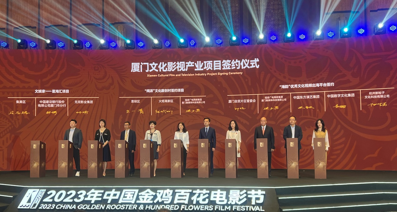 11月1日,2023年中國金雞百花電影節在福建廈門拉開帷幕。電影節上,2023金雞電影市場開幕式暨廈門文化影視產業項目簽約儀式成功舉辦,阜博集團旗下杭州新粒子文化科技有限公司應邀出席,並與福建廣電網絡集團廈門融媒體科技有限公司(下稱“廈門融科公司”)舉行簽約儀式,共同發布“海韻”優秀文化視頻出海平臺。中國數字文化集團和中國東方演藝集團也參加了簽約儀式,宣布正式入駐“海韻”出海平臺,成為平臺首批內容合作夥伴。
