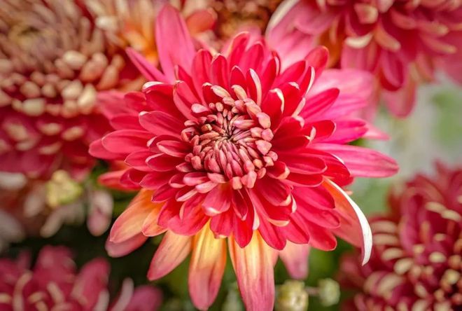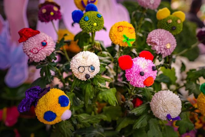 “千菊百态齐斗艳,姹紫嫣红竞风采。”