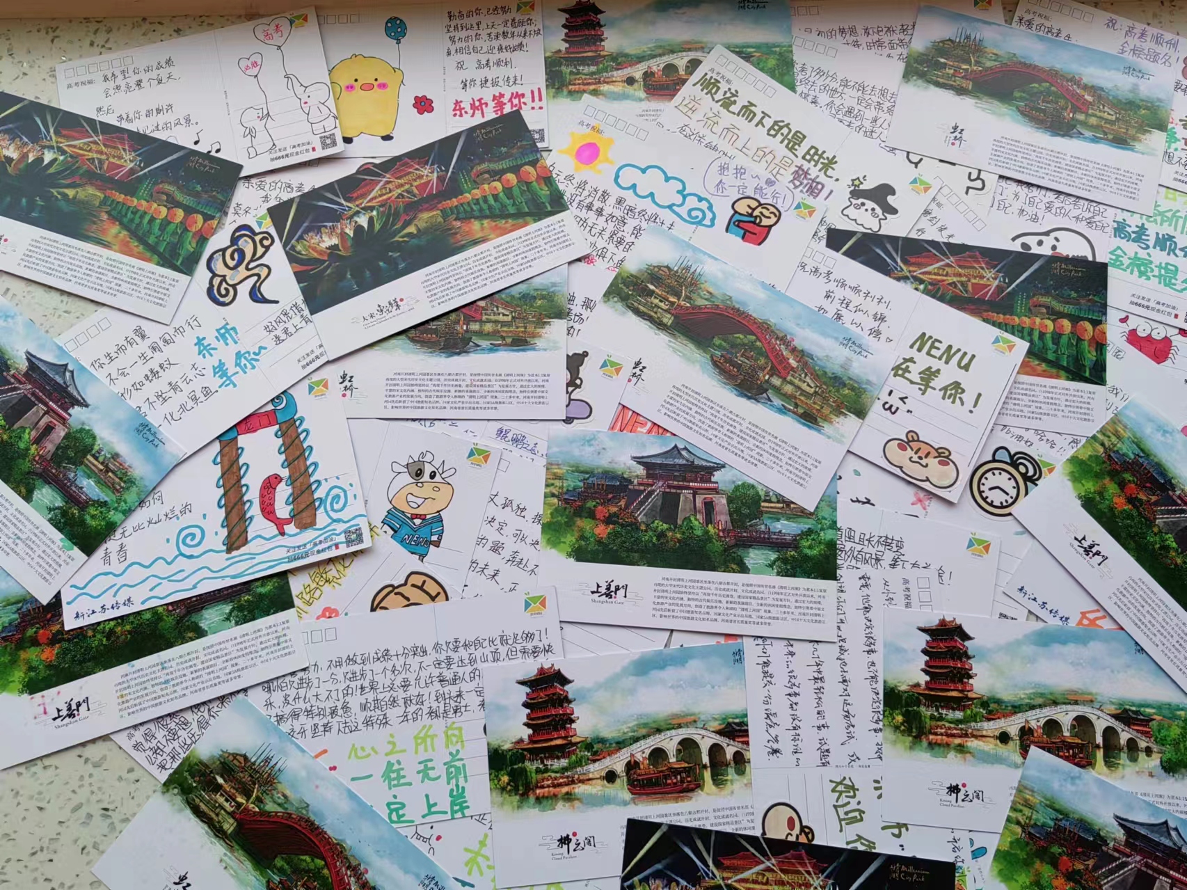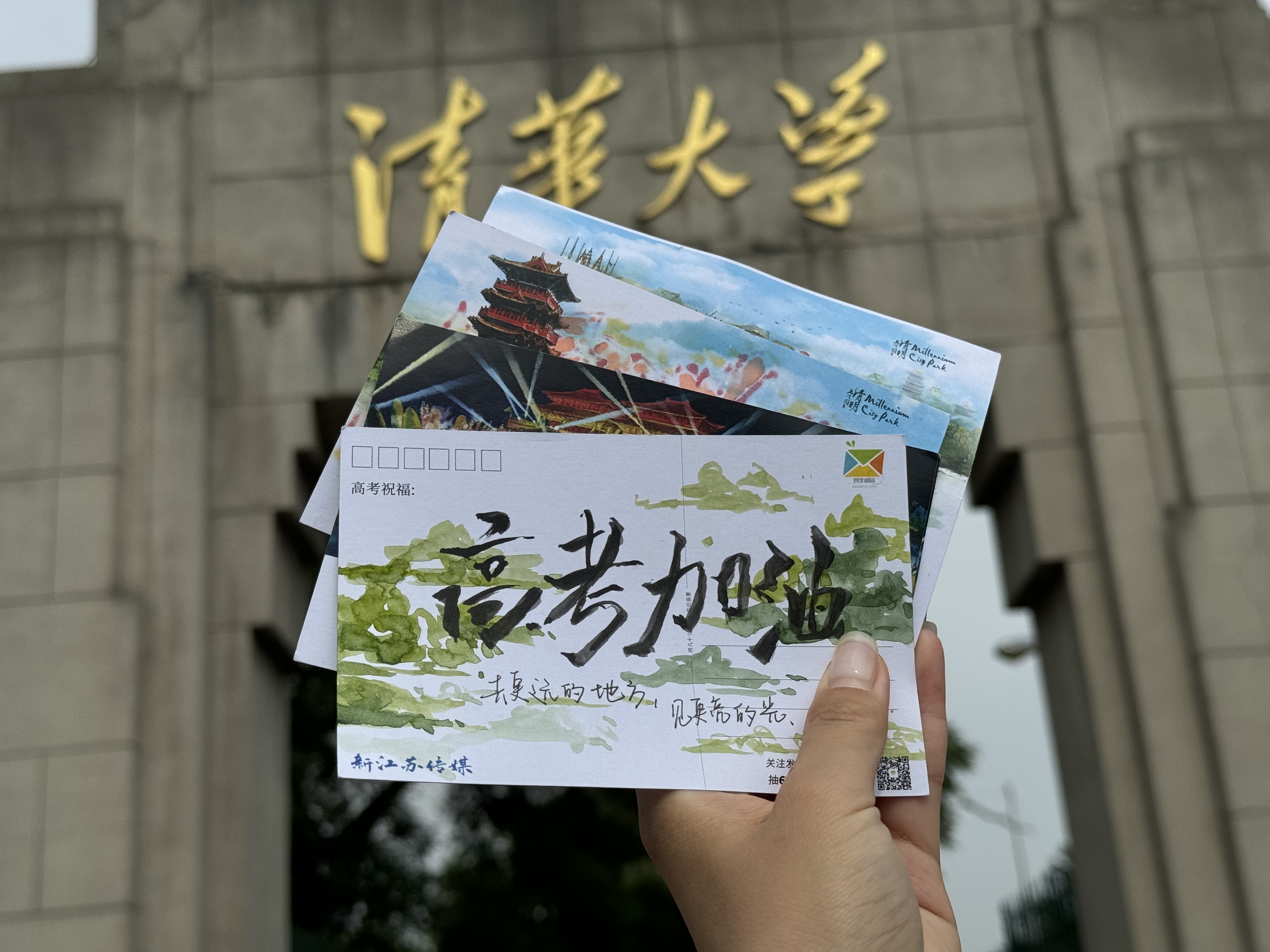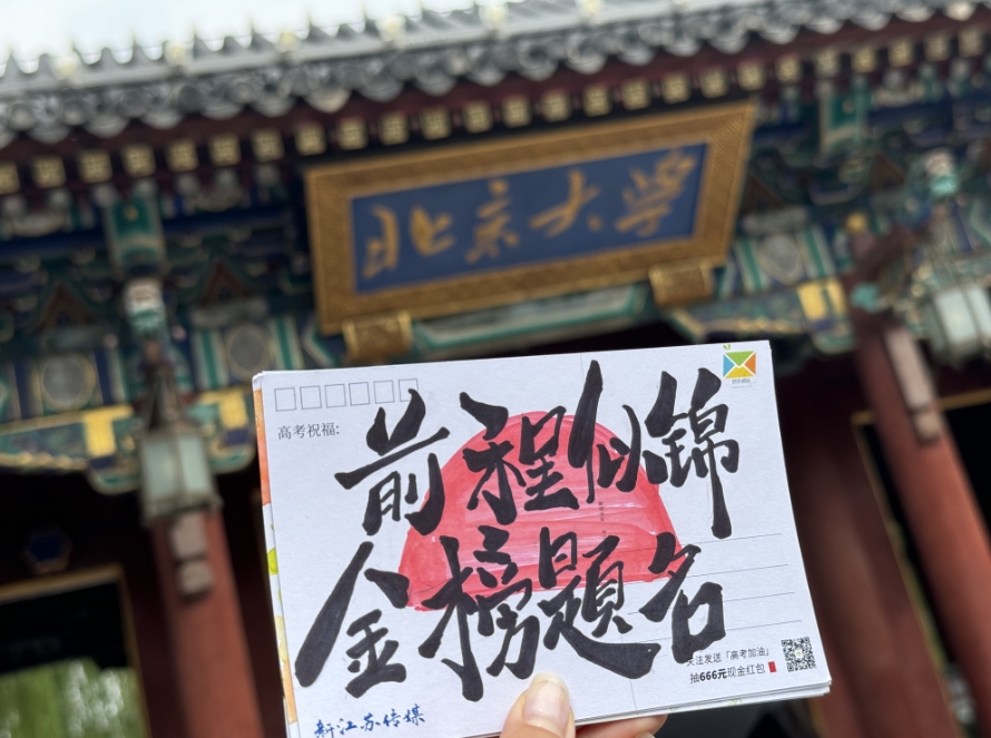 据活动承办方、河南清明上河园景区相关负责人介绍,今年他们还特意在明信片上添加了景区图案,鼓励高考生们以梦为马,心向远方。“我们也希望,高考生们参加完考试后可以走遍祖国的大好河山,领略山川秀丽,厚植文化情怀。”高考结束后,新江苏传媒还将联合河南开封清明上河园景区共同开展学长学姐来信直播活动,吸引更多的网友在来年的活动里为高考学子送上祝福。