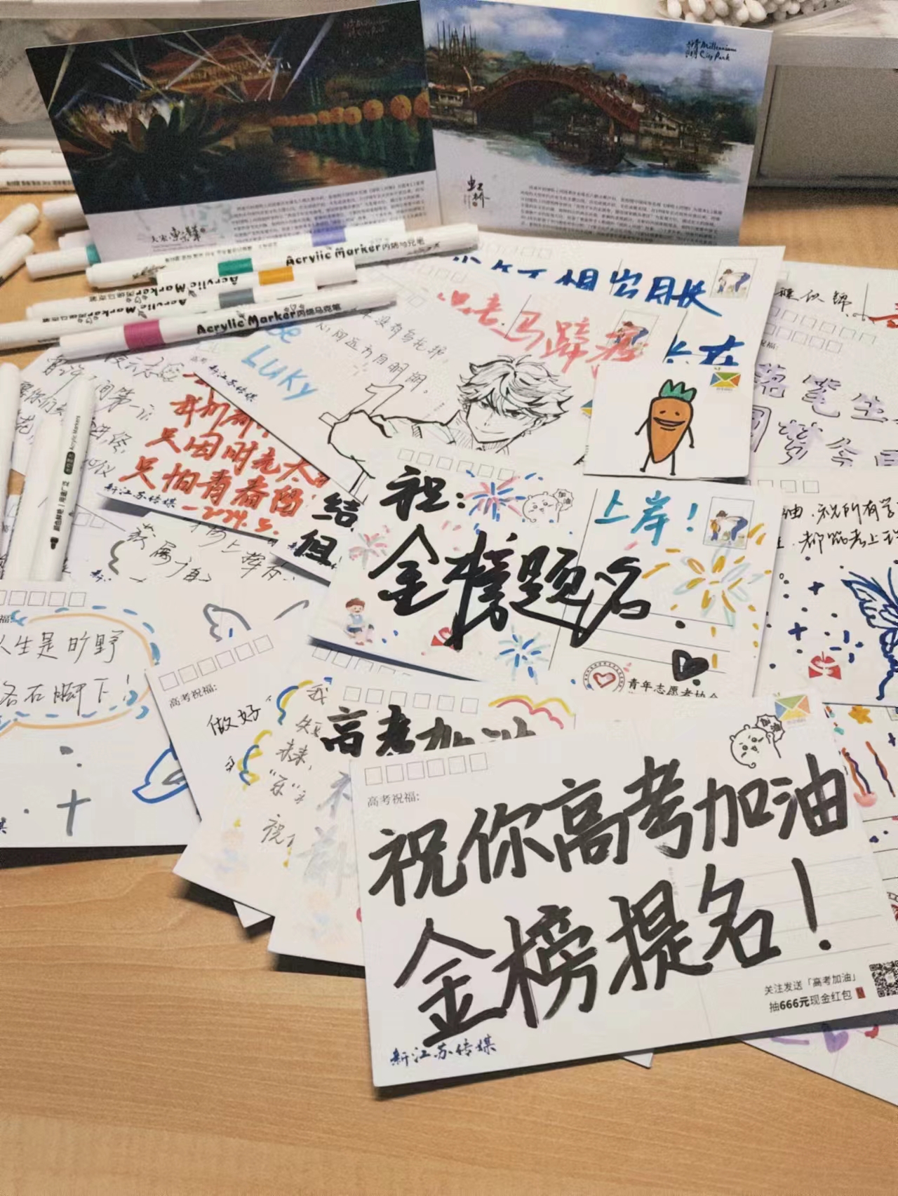 去年,这一活动刷屏网络,频频“破圈”,成为高考学子宝贵的青春回忆。今年,活动持续“火爆”,截至目前已有510所高校参与,先后将38297份高考祝福送到23个省份的高考学子手中,一张张明信片,寄托着最美好的祝福,也承载着最厚重的期待。