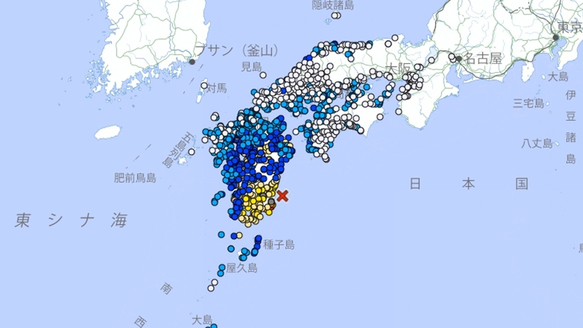 日本宮崎縣8日下午發生規模7.1地震。(圖/翻攝自日本氣象廳)