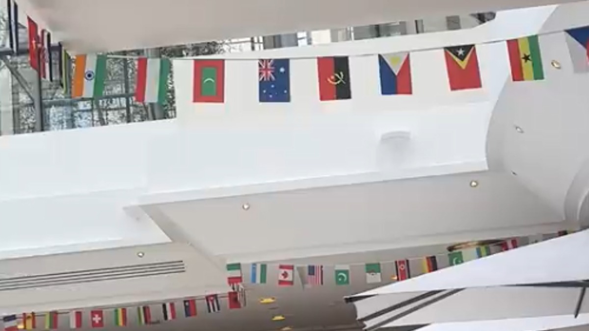 外籍女子與掌鏡的中國籍男子,戴上有錄影功能的眼鏡到巴黎長榮桂冠酒店,看看五星旗風波後的情況,兩人直擊發現,不只沒有中國國旗,其他國家國旗也都撤下了。