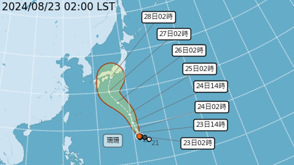 珊珊颱風最新路徑。(圖/翻攝自中央氣象署)