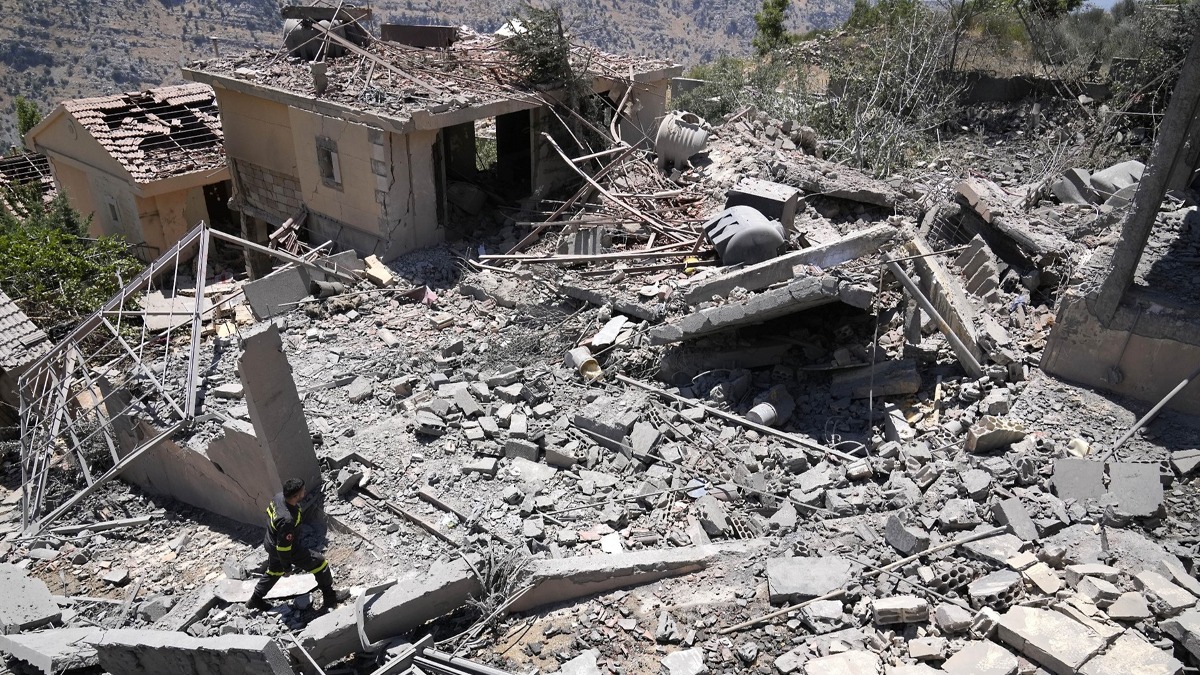 黎巴嫩南部靠近以色列邊境的小鎮遭空襲。(圖/美聯社)