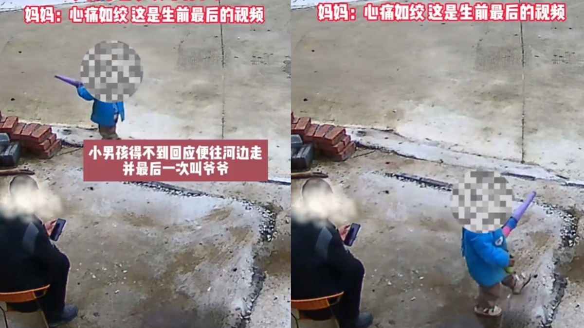 照顧疏忽因此發生憾事!中國大陸一名爺爺帶3歲孫子出門,沒想到爺爺只顧著滑抖音,孫子獨自跑到河邊洗玩具,結果不幸溺水,令人心痛。