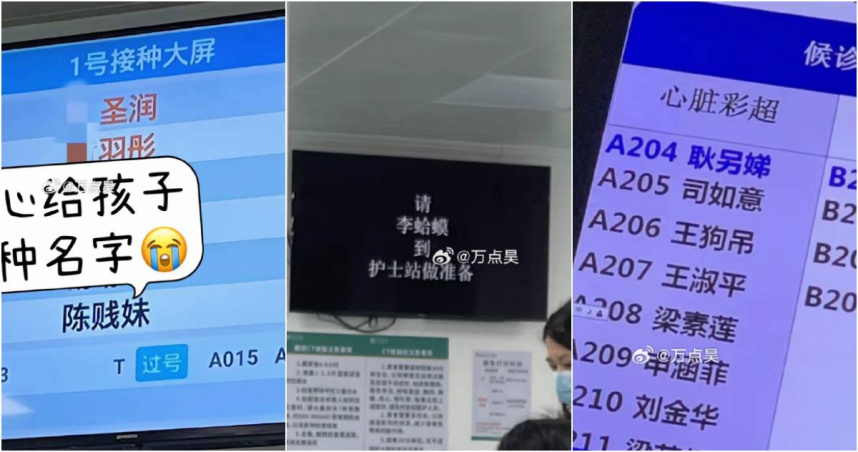 近日有中國網友在醫院發現,竟然有一名等待接種疫苗的寶寶,被取名叫「陳賤妹」,讓他吃驚不已「怎麼忍心給孩子取這種名字?」、「正常家庭父母有給孩子取這種名字的?」沒想到還有其他網友分享,在醫院的屏幕上,真的可以看見許多奇奇怪怪的名字,於是陸續又有人分享了「李蛤蟆」、「王狗吊」等名字。