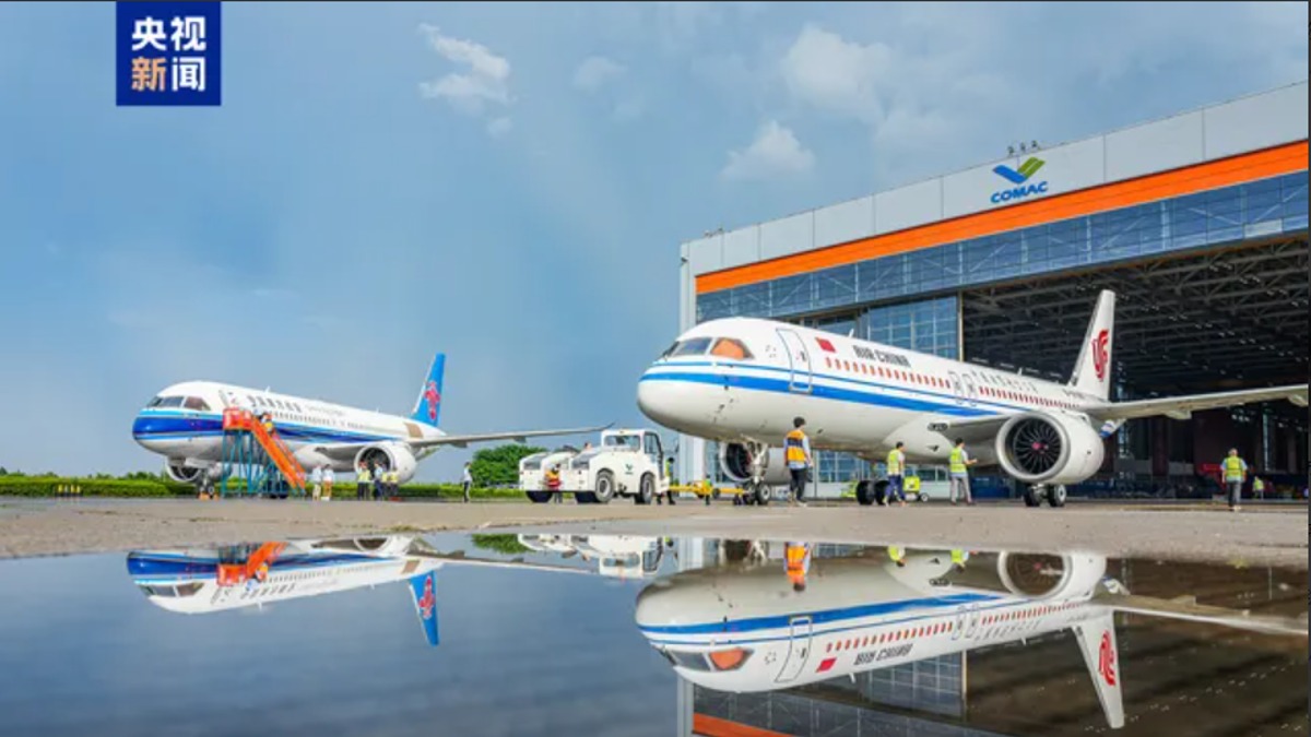 中國自主研發客機C919,今天交機給新用戶中國國航與南方航空。(圖/翻攝自央視)