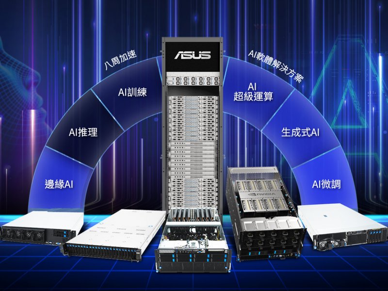 華碩宣布All in AI計畫啟動!將以全方位的AI基礎設施解方進軍伺服器市場,滿足AI驅動應用領域不斷演進的多元需求,包括:邊緣、推論,以及生成式AI等,開啟空前AI超級運算新浪潮。