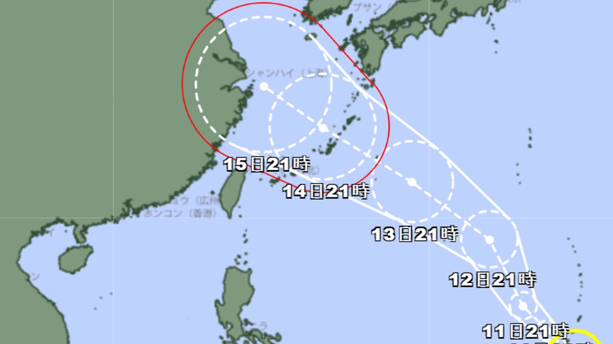 今年第13號颱風貝碧佳預測路徑。(圖/日本氣象廳)