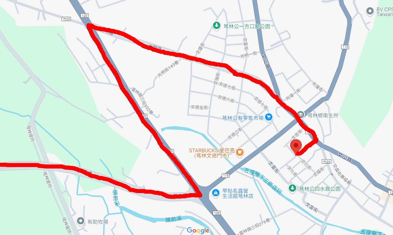 本次送肉粽,將從芎林鄉文化路送到中正橋下。(圖/擷取自Google maps)