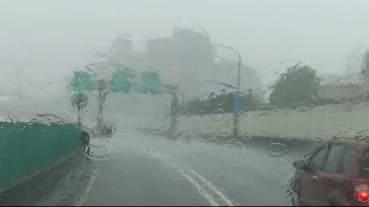 大雷雨侵襲,上路時務必格外注意路況。(圖/東森新聞)