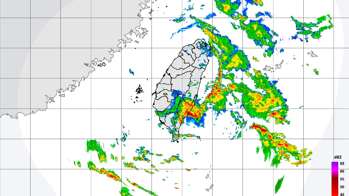 雷達迴波圖顯示,東部部分地區仍有明顯降雨。(圖/中央氣象署)