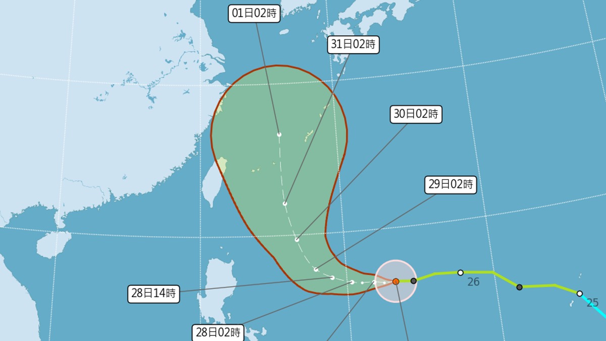 氣象專家林得恩表示,「康芮」靠近台灣時間點,會落在10月30日至11月2日期間。(圖/中央氣象署)