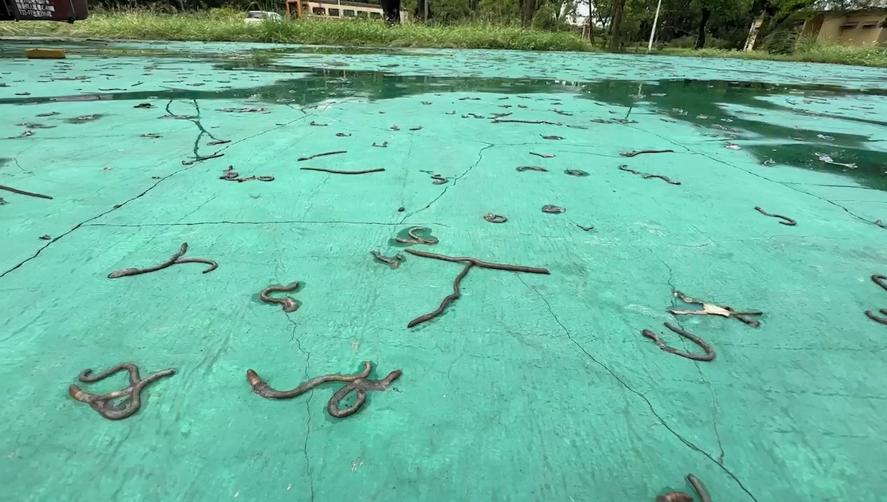 屏東縣政府消防局特搜隊一處舊停機坪,昨(27日)被民眾目擊出現大量蚯蚓,且蚯蚓的數量之多,幾乎布滿整座機坪,加上近期地震頻傳、颱風可能登陸,引發不少網友憂心,這可能是異變或災害前兆。