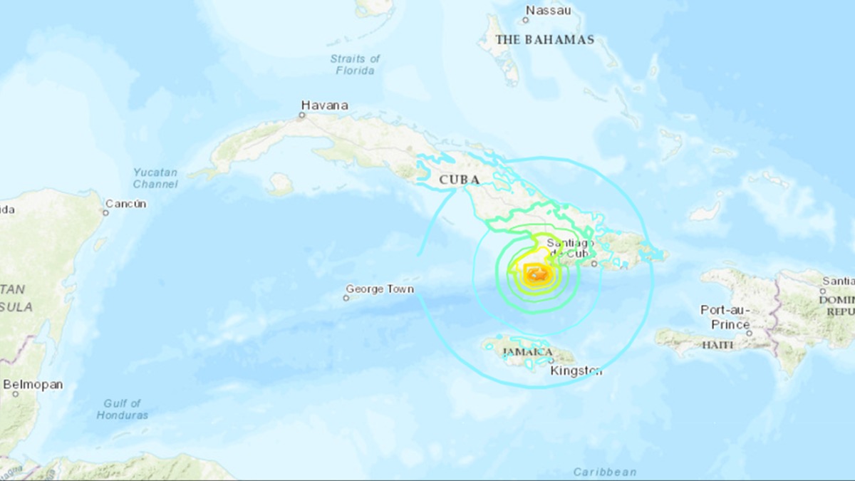 根據美國地質調查所,古巴外海今天發生規模6.8地震,造成第2大城、東南部聖地牙哥巿和周圍鄉村地區建物劇烈搖晃。這起強震前約一小時,附近地區曾發生規模5.9地震。