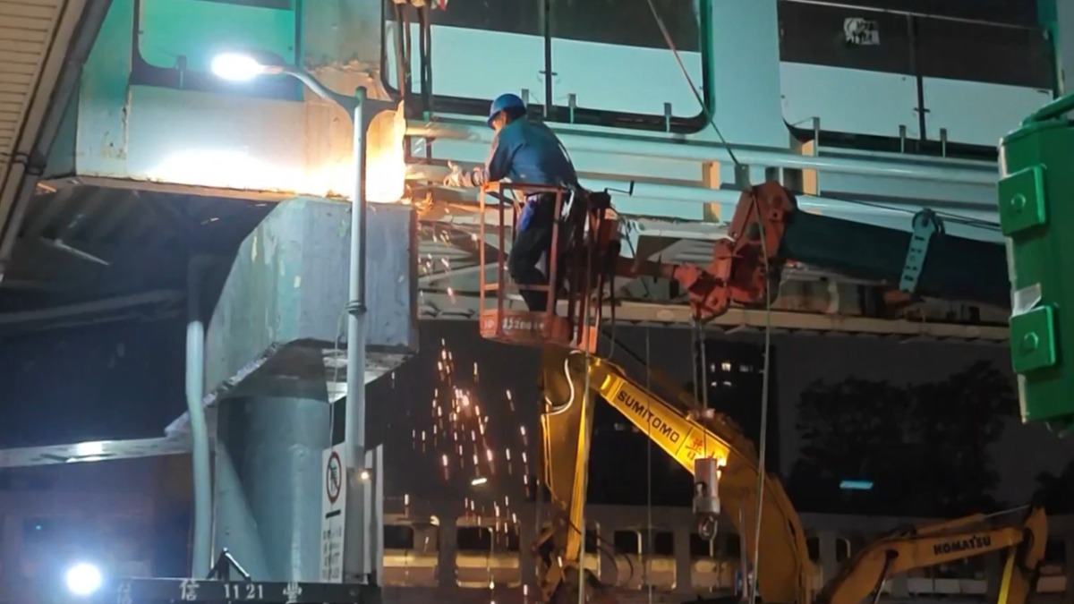 台北和平新生天橋19日晚間正式開始拆除作業。(圖/東森新聞)