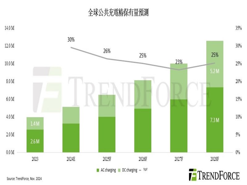 TrendForce:2024年全球公共充電樁成長率大幅放緩 中國與韓國引領增長。(TrendForce提供)