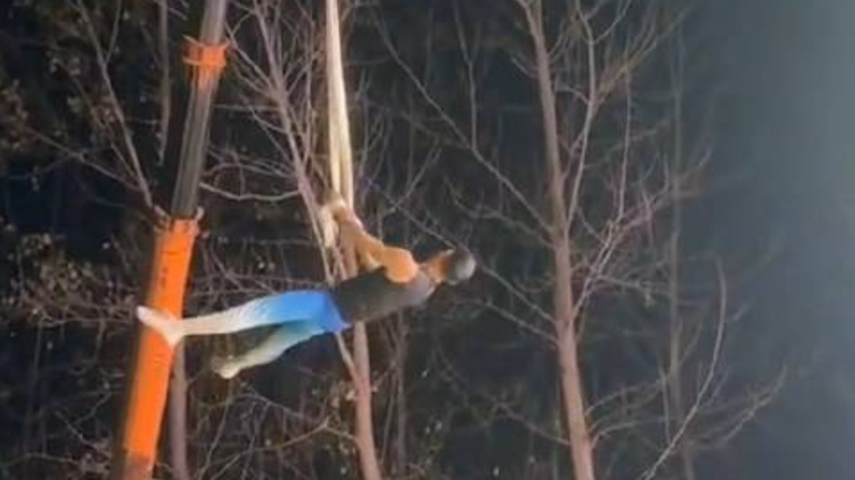 大陸河南25日一名雜技演員演出時,繩索突然斷裂。(圖/翻攝自江淮晨報微博)