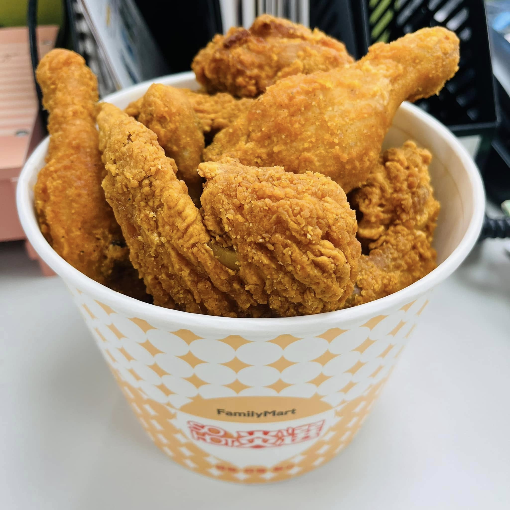 一名網友在臉書社團「全家便利商店/7-11超商新品&好物分享區」發文表示,「早上嚷嚷星期一完全不適合上班,好想吃炸雞,中午同事就抱了一桶來吃,全家竟然有出炸雞桶!雞翅、腿排、雞腿任選8支320,吃的時候還熱熱的,味道還不錯。」