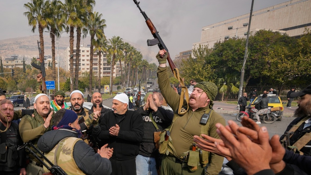 敘利亞大馬士革反對派勢力沙姆解放組織慶祝佔領該市。(圖/美聯社)