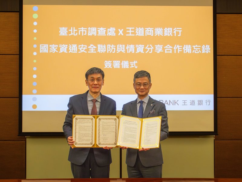 王道銀行與臺北市調查處簽署「國家資通安全聯防與情資分享合作備忘錄」 強化數位金融資安防禦能力