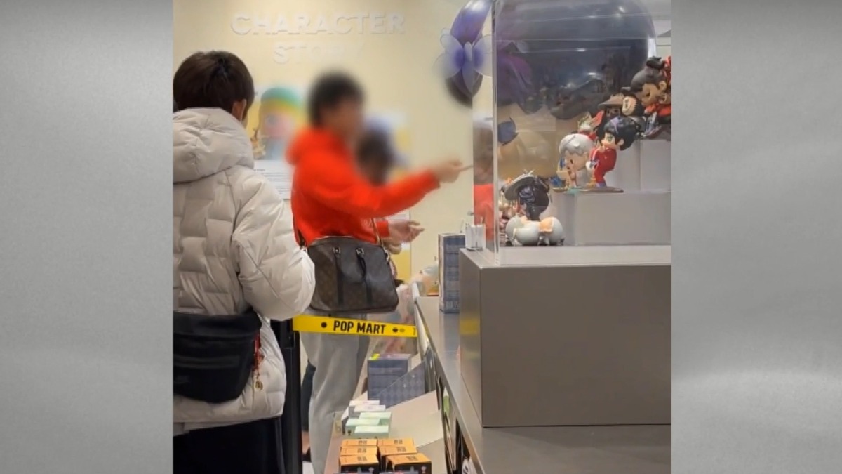 有陸客到台北中山區百貨,要買泡泡馬特公仔,要求店員把商品拿下來。(圖/Threads@wei.wei.chen授權)