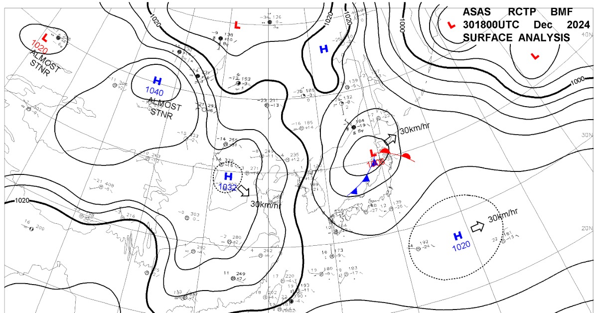 中央氣象署表示,今日清晨輻射冷卻影響,各地氣溫偏低,白天北部及宜蘭、花蓮持續偏涼,高溫約18、19度,中南部地區,高溫約在21至25度,不過,入夜後各地氣溫稍下降,提醒民眾跨年夜外出活動可多穿件衣物,避免著涼。