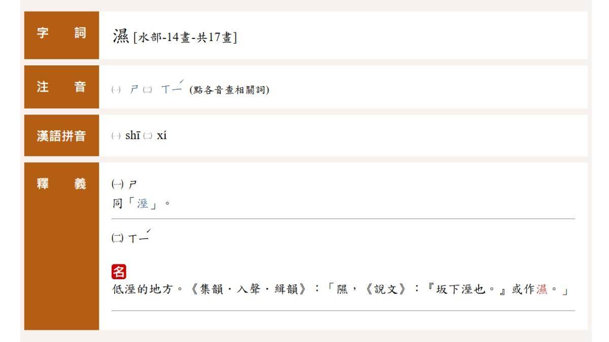 常見字「濕」與「溼」經常被搞混。(圖/翻攝自教育部重編國語辭典修訂本)