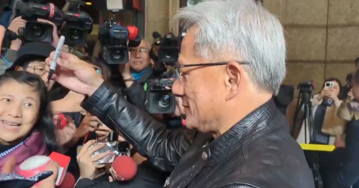 黃仁勳幫粉絲簽名。(圖/東森新聞)