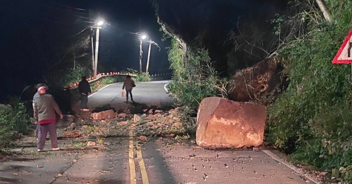 新竹竹東鎮122縣道,29公里處在昨(4)日晚間七點,發生土石崩塌。(圖/東森新聞)