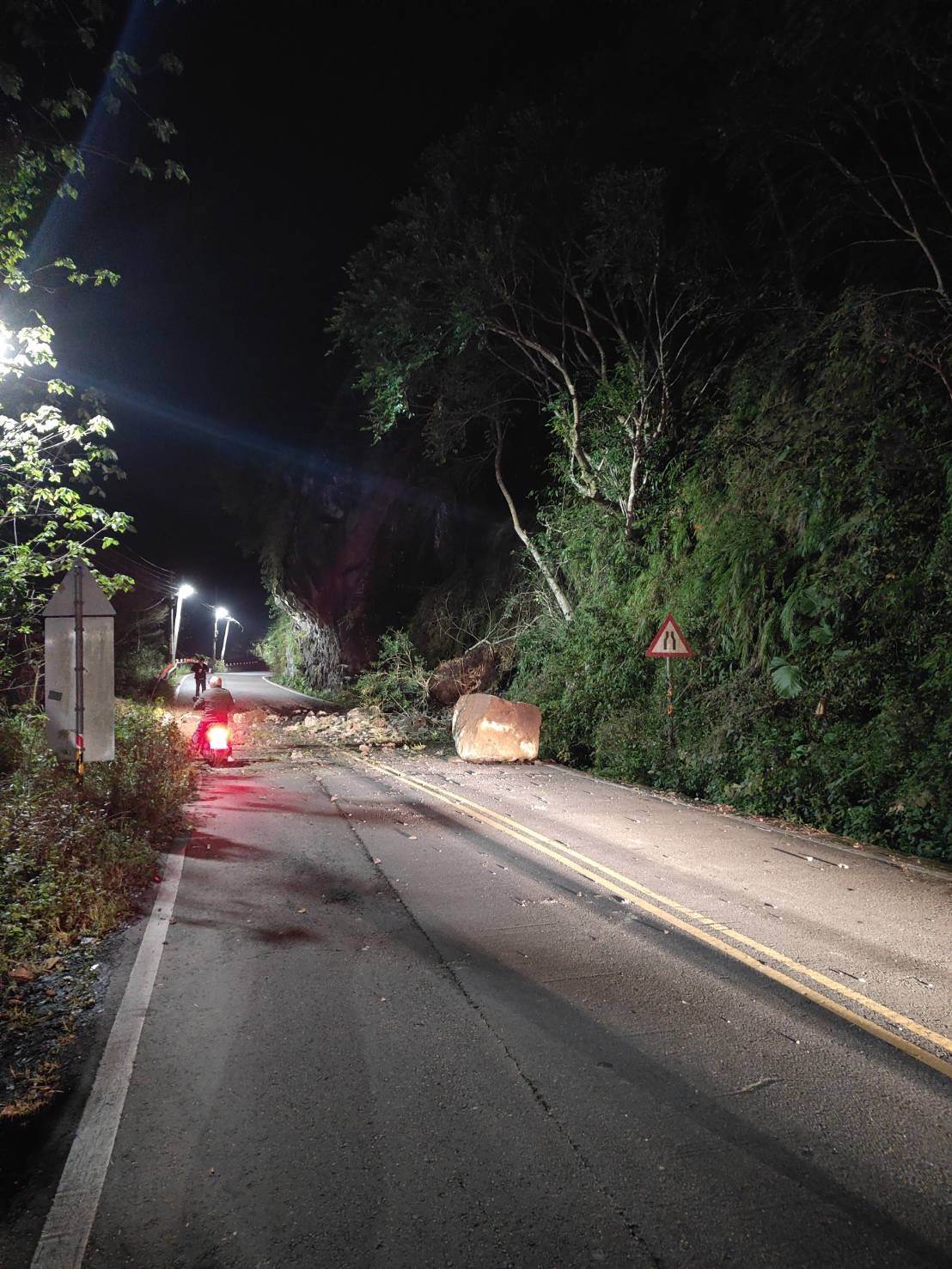 竹東鎮122縣道29公里處有落石倒塌。(圖/東森新聞)