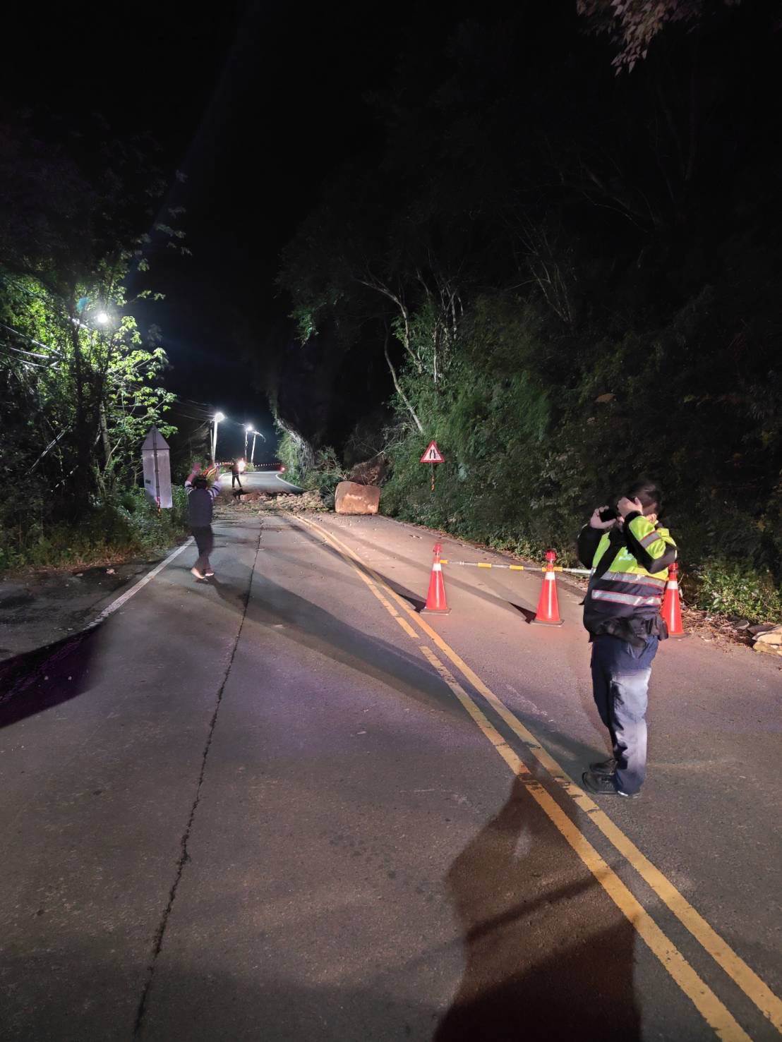 4日晚間,上坪派出所接獲民眾報案稱於竹東鎮122縣道29公里處有落石倒塌,員警立即前往現場放置交通錐、橫桿及爆閃燈警示來往車輛,並於現場警戒,提醒用路人行車安全,還好這次落石倒塌無人受傷,目前已清除完畢並恢復通車。