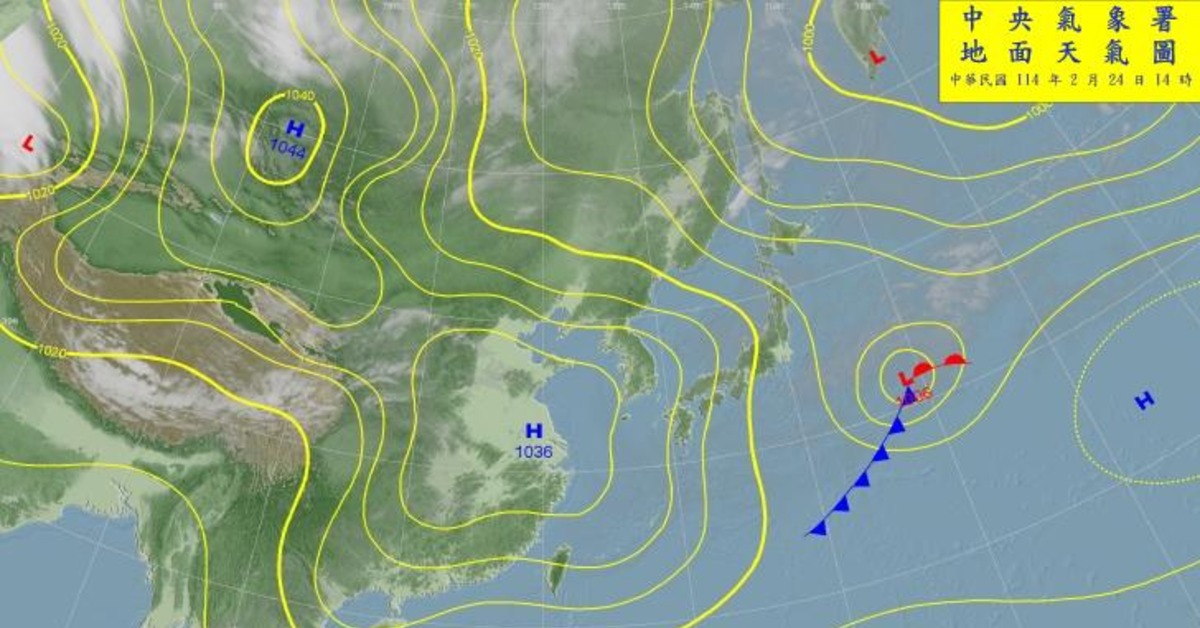 明(25日)白天起冷氣團逐漸減弱,氣溫明顯回升。(圖/氣象署)