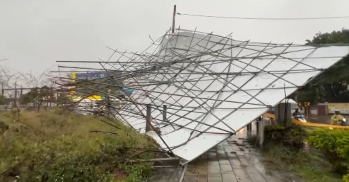 新/台中狂風暴雨!災情頻傳 路邊招牌、樹全倒塌