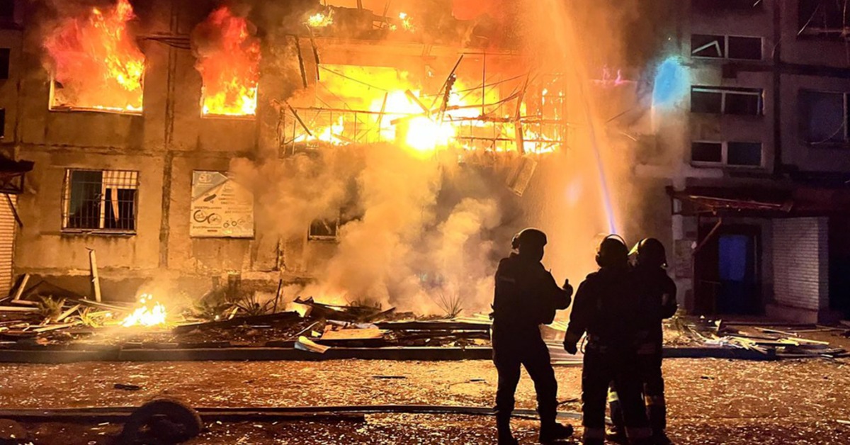 遭到炮火擊中的車輛和建築燃起熊熊大火,由於火勢相當猛烈,消防人員的水柱只是杯水車薪,俄羅斯8號繼續對烏克蘭東部城市多布羅皮利亞和東北部哈爾科夫,發動飛彈與無人機空襲,共造成數10人傷亡,其中又以多布羅皮利亞的傷亡情況最慘重。