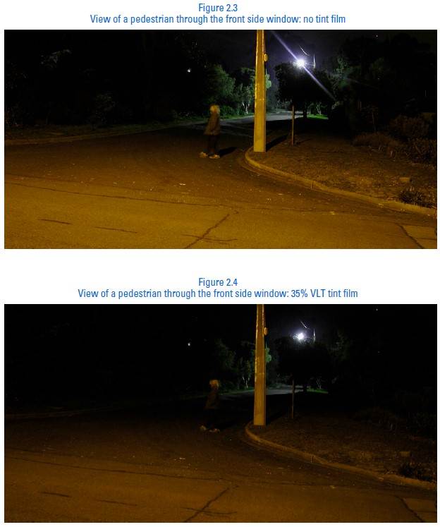 車窗黏貼透光率35%隔熱紙大副降低夜間能見度。(圖/The University of Adelaide, Australia, 2004)