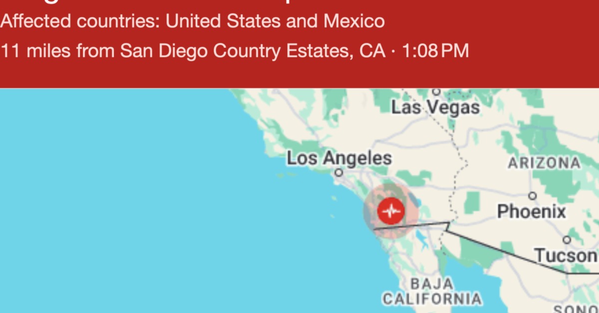 這起地震不僅讓聖地牙哥市民宅的燈具晃動,甚至在聖地牙哥市西北方100多公里處的大城洛杉磯都能感受到搖晃。