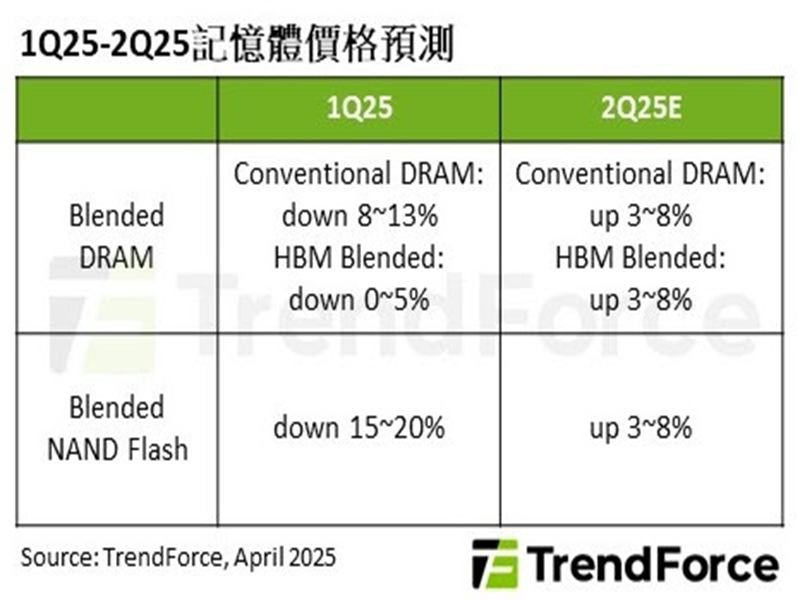 TrendForce:美國關稅政策帶動拉貨潮 估Q2記憶體合約價漲幅將擴大
