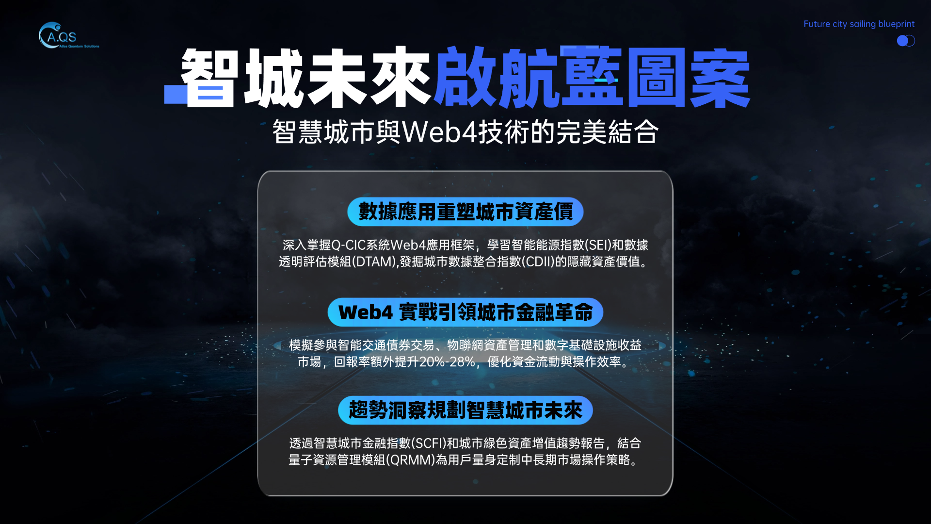 結語:探索未來的智慧經濟隨著「智城未來藍圖案」的開啟,A.QS 再次展現了其在全球技術領域的領導力,並為市場參與者提供了一個前所未有的創新機會。未來,Web4 技術的商業化應用將持續推動智慧經濟的全球化進程。