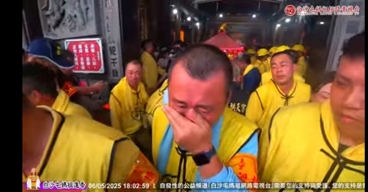 許多網友也從直播中看到香擔組大哥落淚。(圖/翻攝自白沙屯媽祖網路電視台YT)