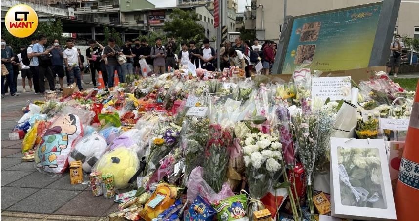 三峽重大車禍3人不幸喪生,許多民眾準備鮮花、零食悼念。(圖/CTWANT)