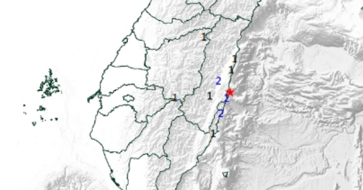各地最大震度為花蓮石梯坪2級、光復2級、紅葉1級、水璉1級、鹽寮1級;台東長濱2級、成功1級;南投玉山1級、合歡山1級。