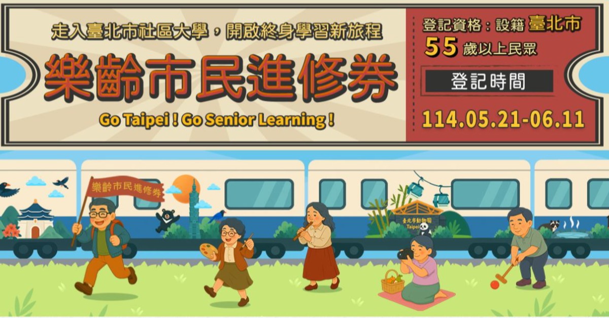 登記方式:至「樂齡市民進修券」主題網站 taipei-seniorcitizens-learning-voucher.com 完成註冊並參與抽籤。