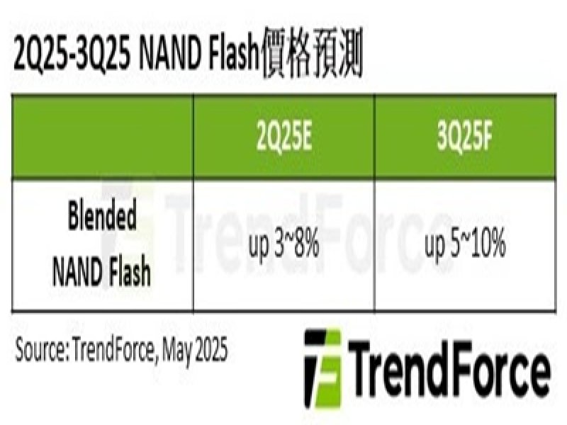 TrendForce指出,今年初由於供應商執行保守產能策略,NAND Flash市場逐步轉向供需平衡。四月初美國對等關稅政策破壞第二季市場的既有節奏,增添價格走勢變數。雖有部分PC製造商於第二季提前加速出貨,但未能有效刺激NAND Flash產品整體出貨,加上零售市場持續面臨下修壓力,供應商更加謹慎控制產能。