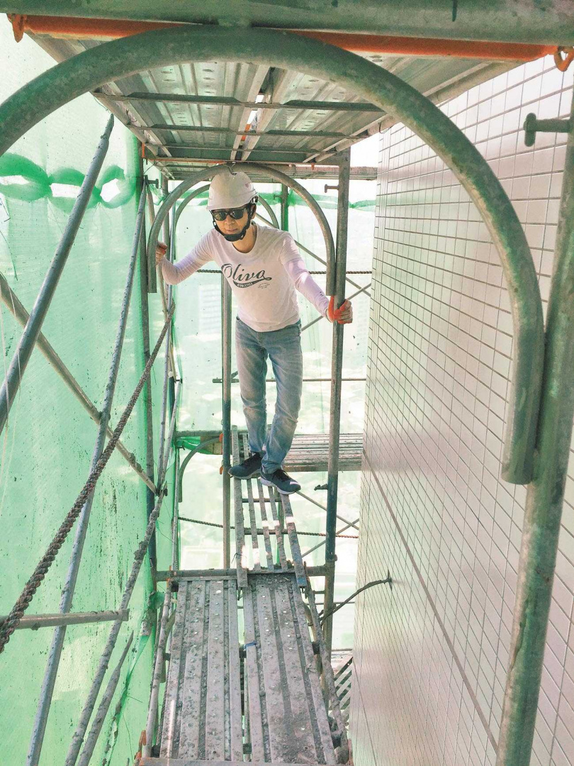 邵永添追求高品質,曾在晶英行館興建時爬上鷹架親自勘查外牆工程。(圖/CTWANT)