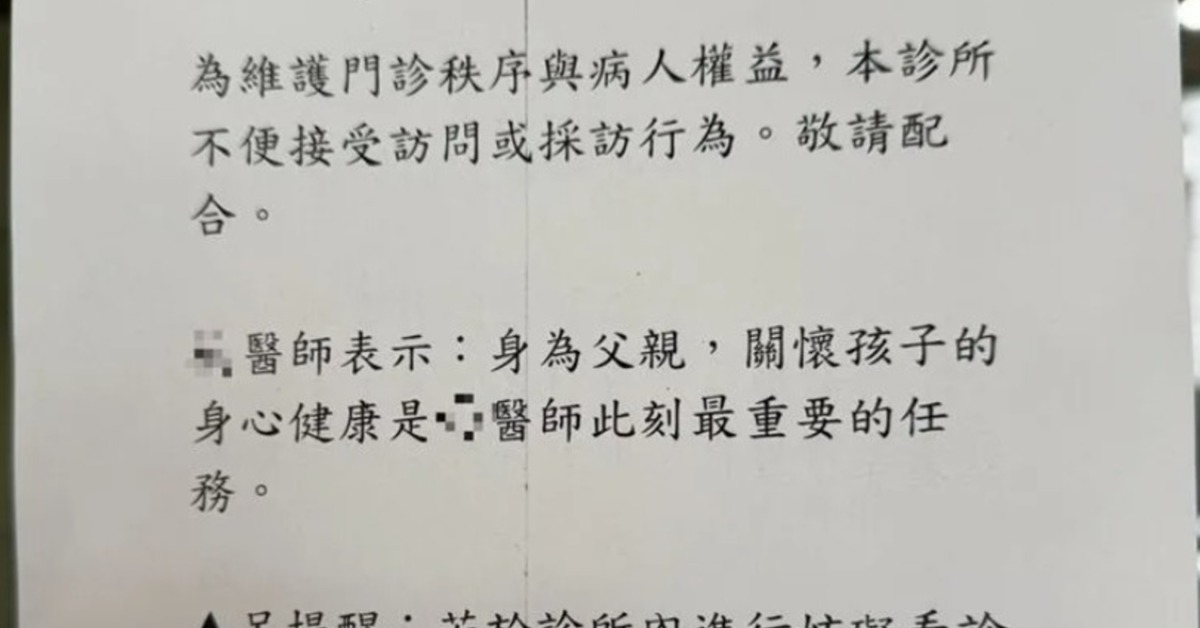涉事高中生父親今日取消看診,於診所外張貼聲明。(圖/翻攝畫面)